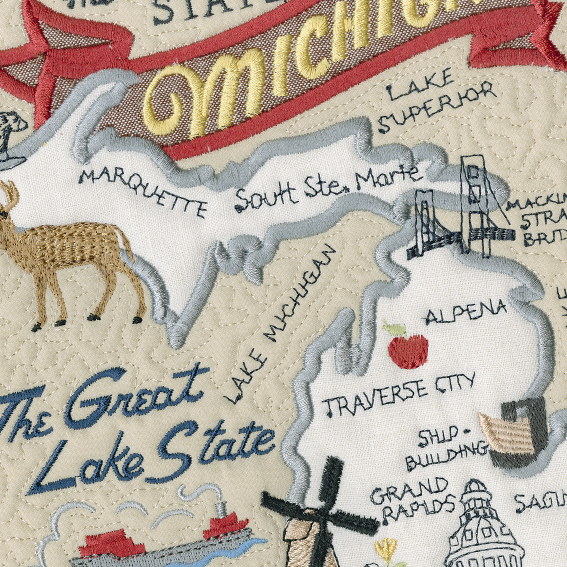 These designs were all hand drawn and contain beautiful appliqués and quilt designs combined with state cities and landmarks along with the state bird and flower. There are 10 designs in each collection that are divided between quilting and embroidery. The states can be combined together for big projects or can be used individually.