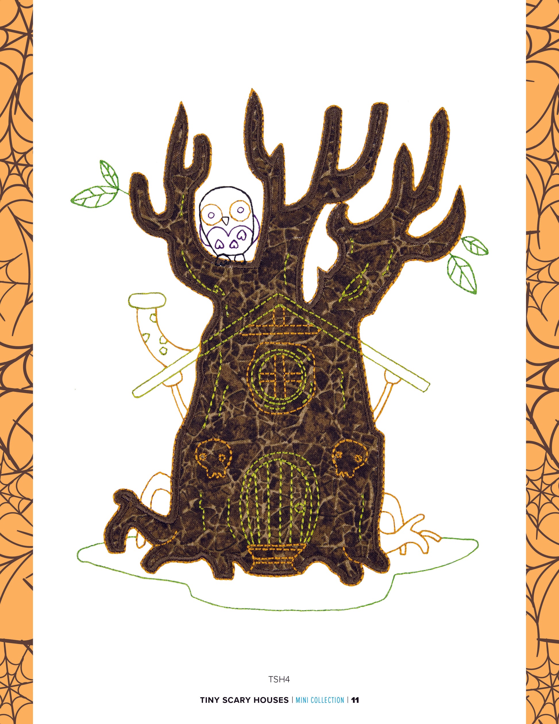 Add some flair to your Halloween décor by stitching out these little homes for any wandering ghouls or ghosts. This collection includes 12 spooky designs available in 3 different sizes. Simple appliqué spaces within each of the house designs allow you to add bold pops of Halloween color, while a combination of two different finishing stitches help emphasize the fun, Halloween-themed designs. From tea towels and sweatshirts to wall decorations or treat bags, these Tiny Scary Houses will look fantastic on all sorts of crafty projects, whether you stitch just one or the whole neighborhood!