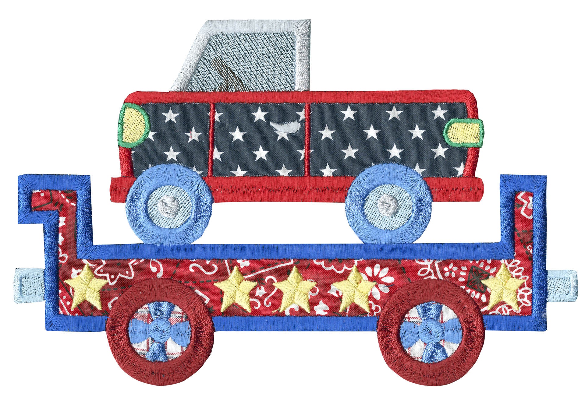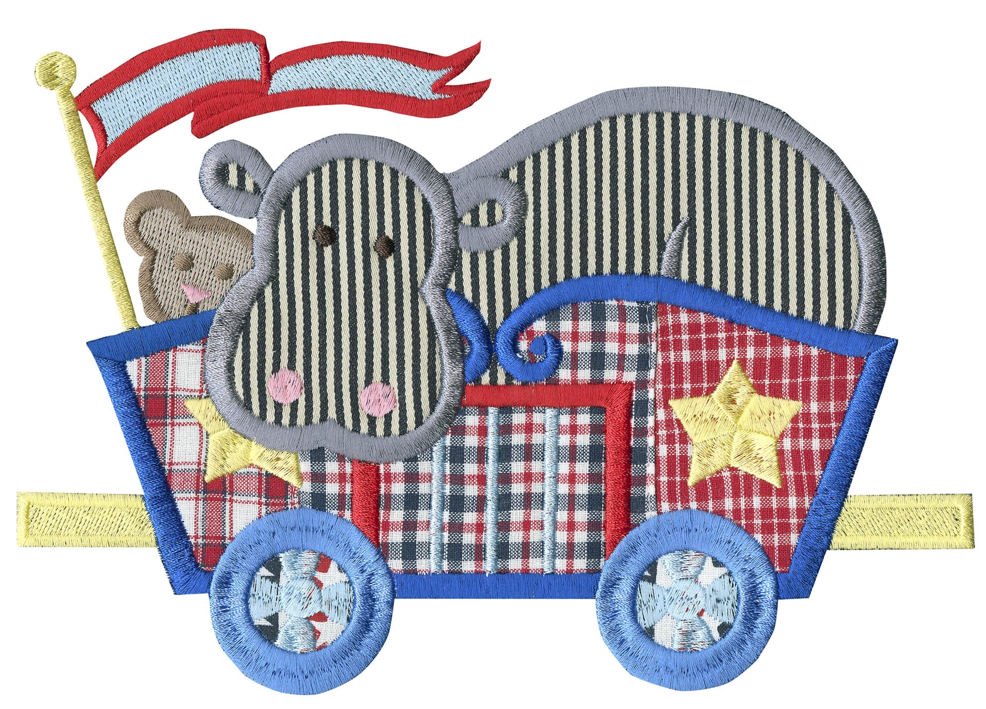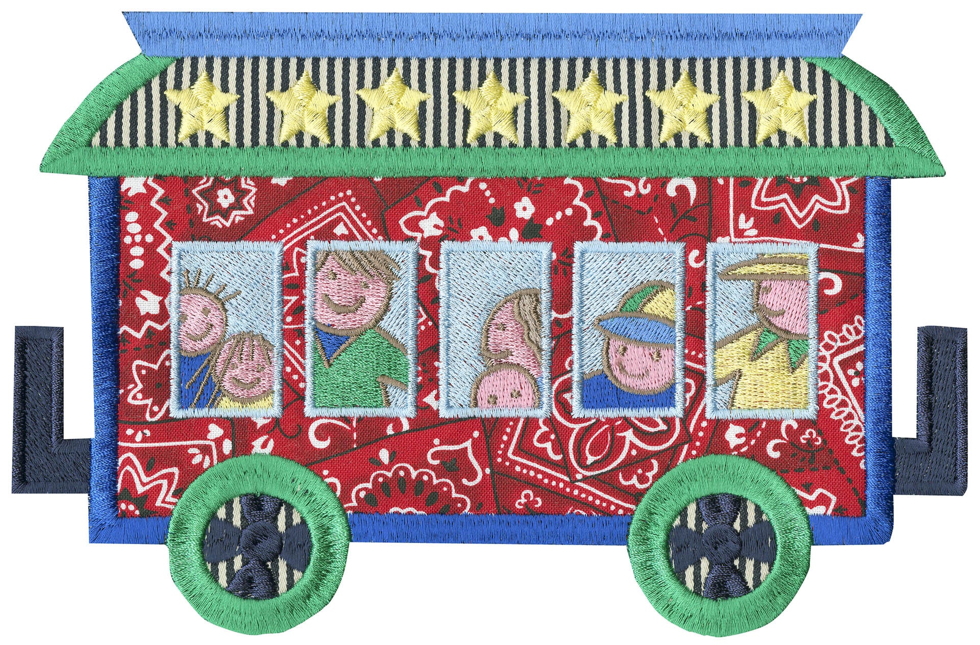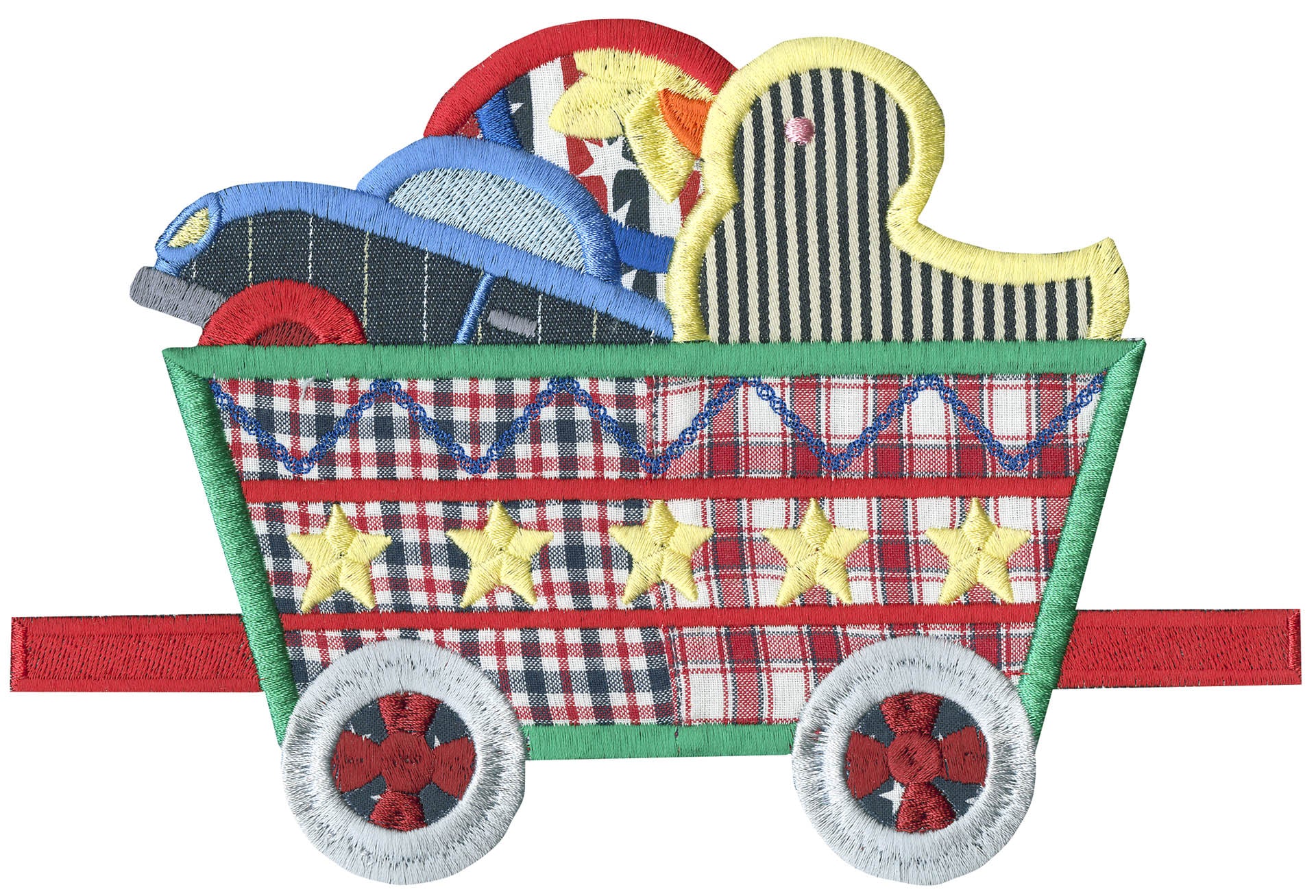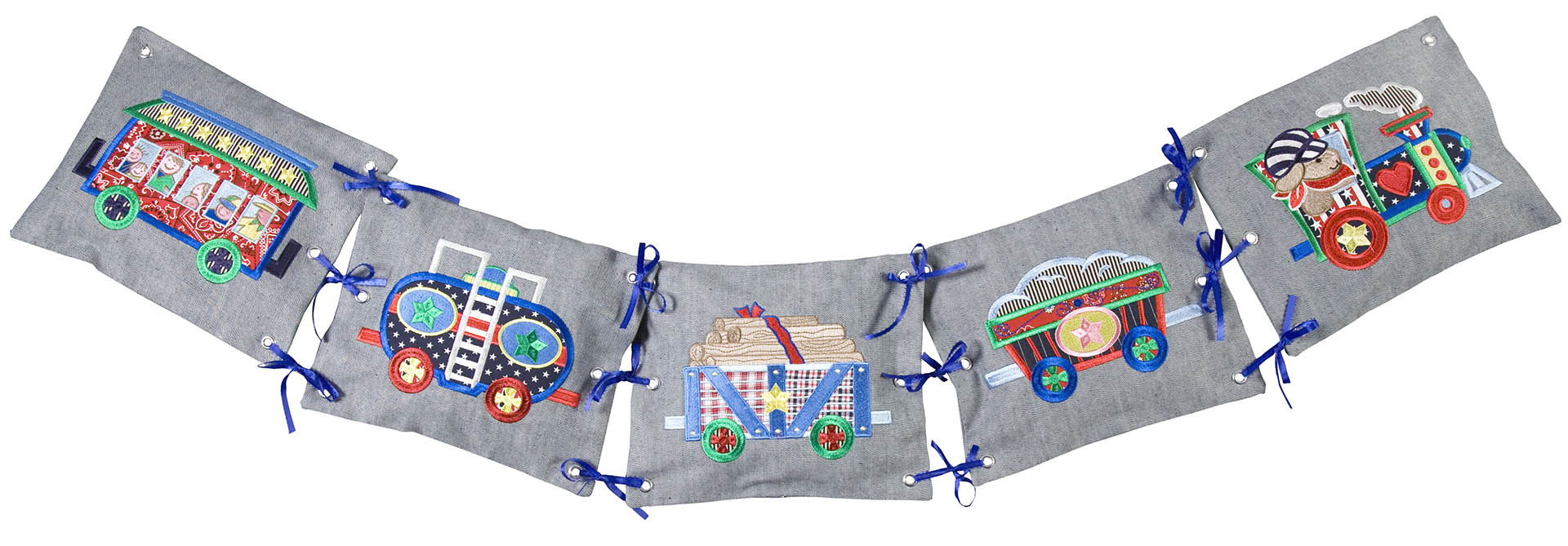 What little boy doesn’t like trains? This is a cute collection of 12 different train cars along with a few other design elements to create a beautiful quilt or banner. Each car has its own unique theme. There are animal cars, people cars, logs, rocks and much more. Each of the trains come in two sizes. We created a unique wall hanging for a project as well!
