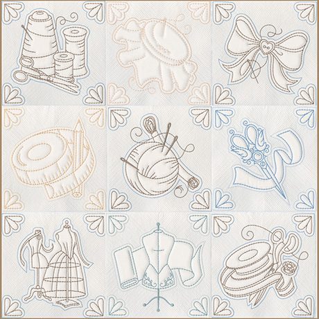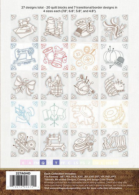 Trapunto, from the Italian for “to embroider,” is a method of quilting that is also called “stuffed technique.” A puffy, decorative feature, trapunto utilizes at least two layers, the underside of which is slit and padded, producing a raised surface on the quilt. Traditional Trapunto was a very time consuming technique because it was all created by hand. We have found a faster way. Utilizing a technique where you place and cut multiple layers of batting we have found a way for you to create classic Trapunto techniques in your hoop. For our latest Trapunto collection we decided to a sewing machine and notions collection. What better way to showcase this technique! There are 20 different main designs along with border designs. We have of course also included a step-by-step tutorial so you will master this technique in no-time. The best part about this collection is that you can combine it with other Anita Goodesign collections! This collection is part of the “Mix and Match” quilt line. All of the design collections that are in the “Mix and Match” line come with 5”, 6”, 7” and 8” blocks and are fully interchangeable. There are redwork collections, folded fabric collections, special editions, jelly roll collections plus many others.