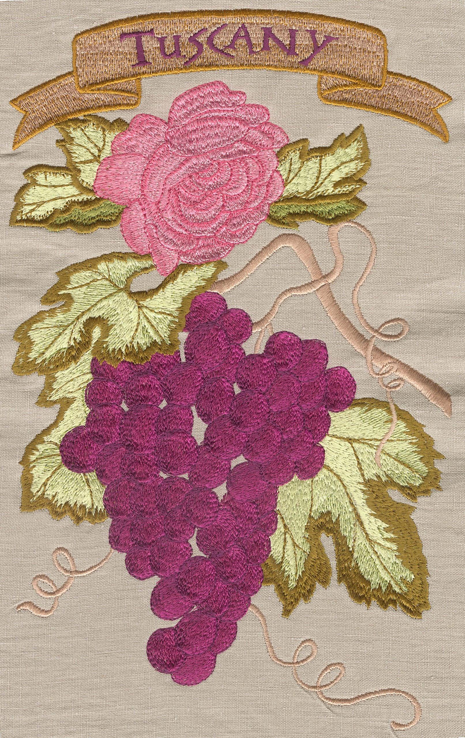 Adorn your table setting with grapes, vines and wine to create that Italian aesthetic! This collection includes borders, large designs, switch covers and elements featuring all of your favorite wines. This pack has forty two designs for every hoop size including the new jumbo hoop. We include instructions and tips to create stunning projects. This collection will definitely get you booking your next trip to Italy!
