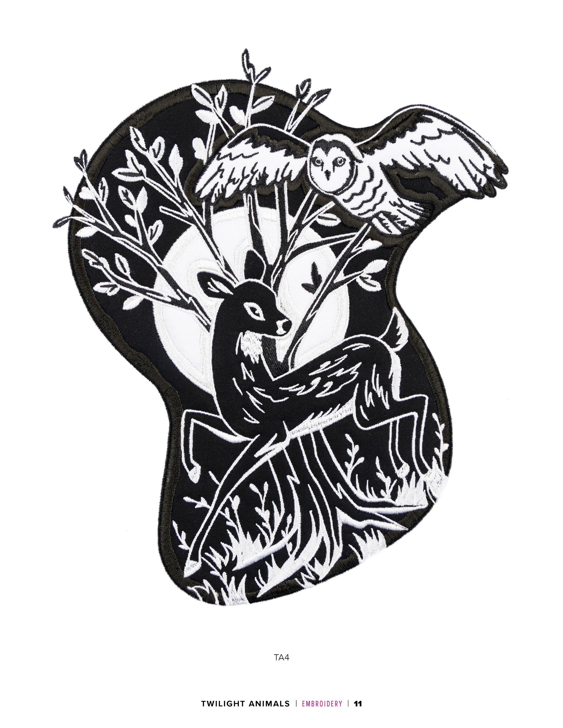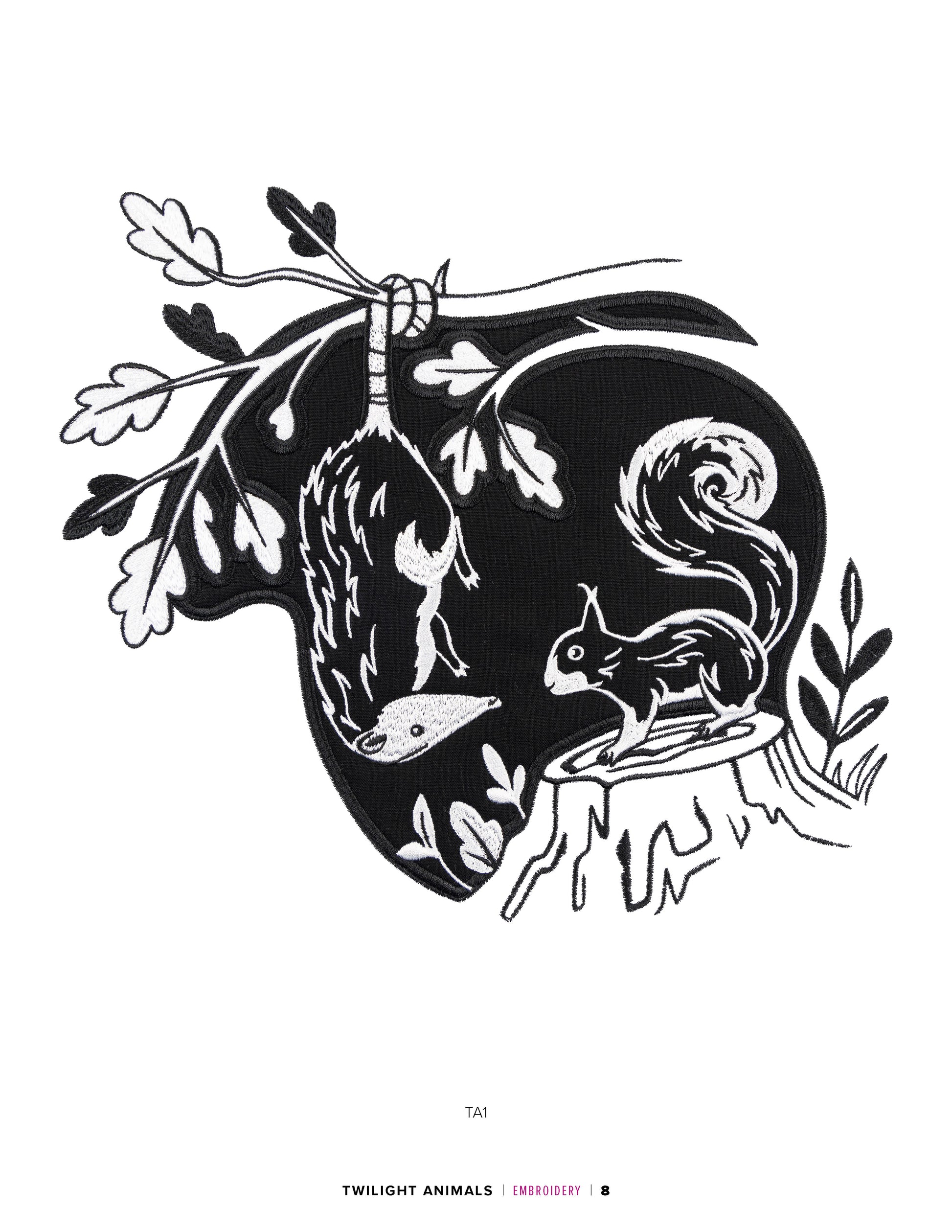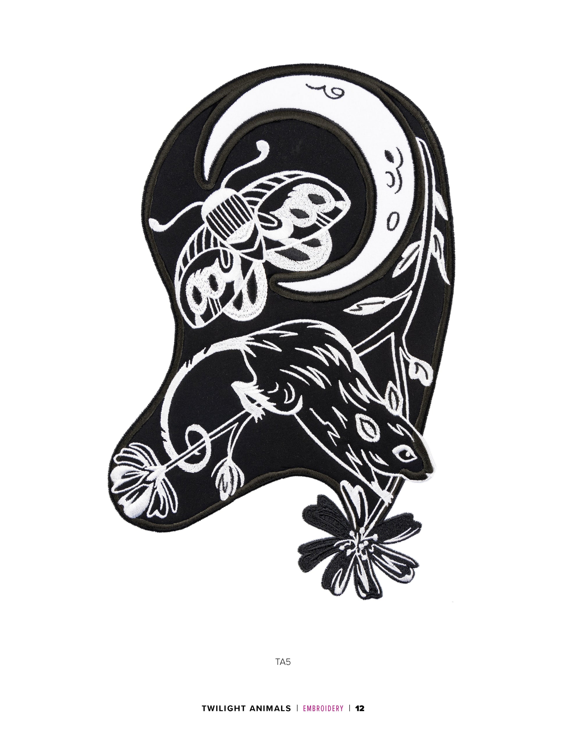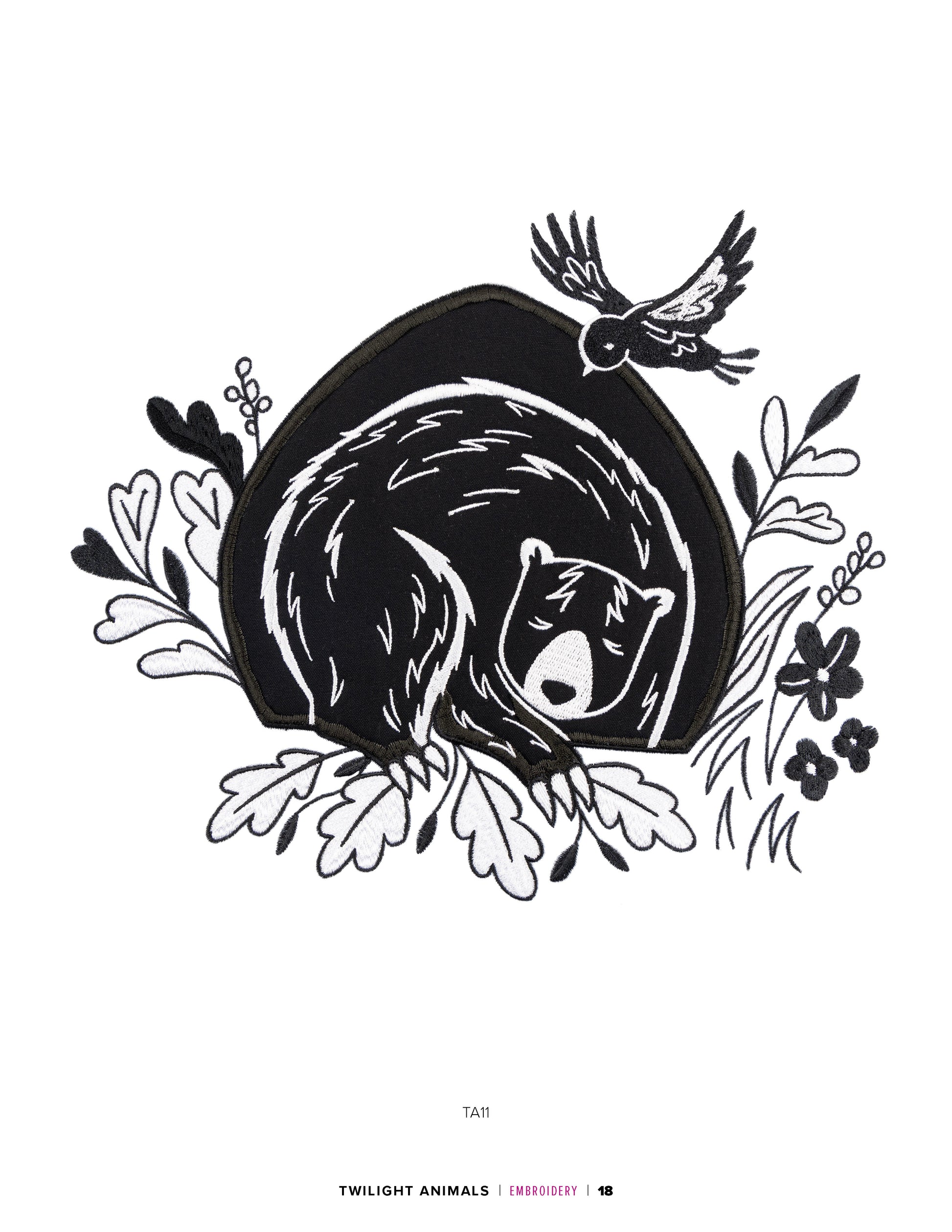 The world has been snoozing peacefully all night long, and the glow of twilight begins to take over the sky. It’s not quite the night and not yet day, but that perfect moment before all the hustle and bustle begins. These critters, both big and small, are awakening in their burrows or wandering about, ready to bring a bit of magic to your next embroidery project! Twilight Animals features an array of 15 different designs, each digitized with a special, double satin stitch on their appliqués! This secondary satin stitch, known as a ghost stitch, helps further draw contrast in the designs. The ghost stitch technique is sure to add a touch of extra whimsy to these animals while emphasizing their enchanting appearances. We stuck with a simple black and white color palette to really exaggerate the dark and light look, but you can create these designs in any duo of colors you can imagine, from sepia tones to a monochromatic variation. With 4 different sizes to choose from, each of these critters will look stunning wherever you stitch them! Designs: 15