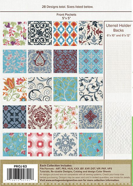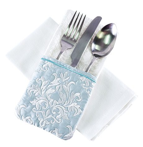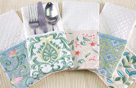 This elegant Utensil Holder is a fast and easy in the hoop project! Each piece is made in a separate hooping and the final step sews everything together. With 20 different designs to choose from, you can change your table setting whenever you like!