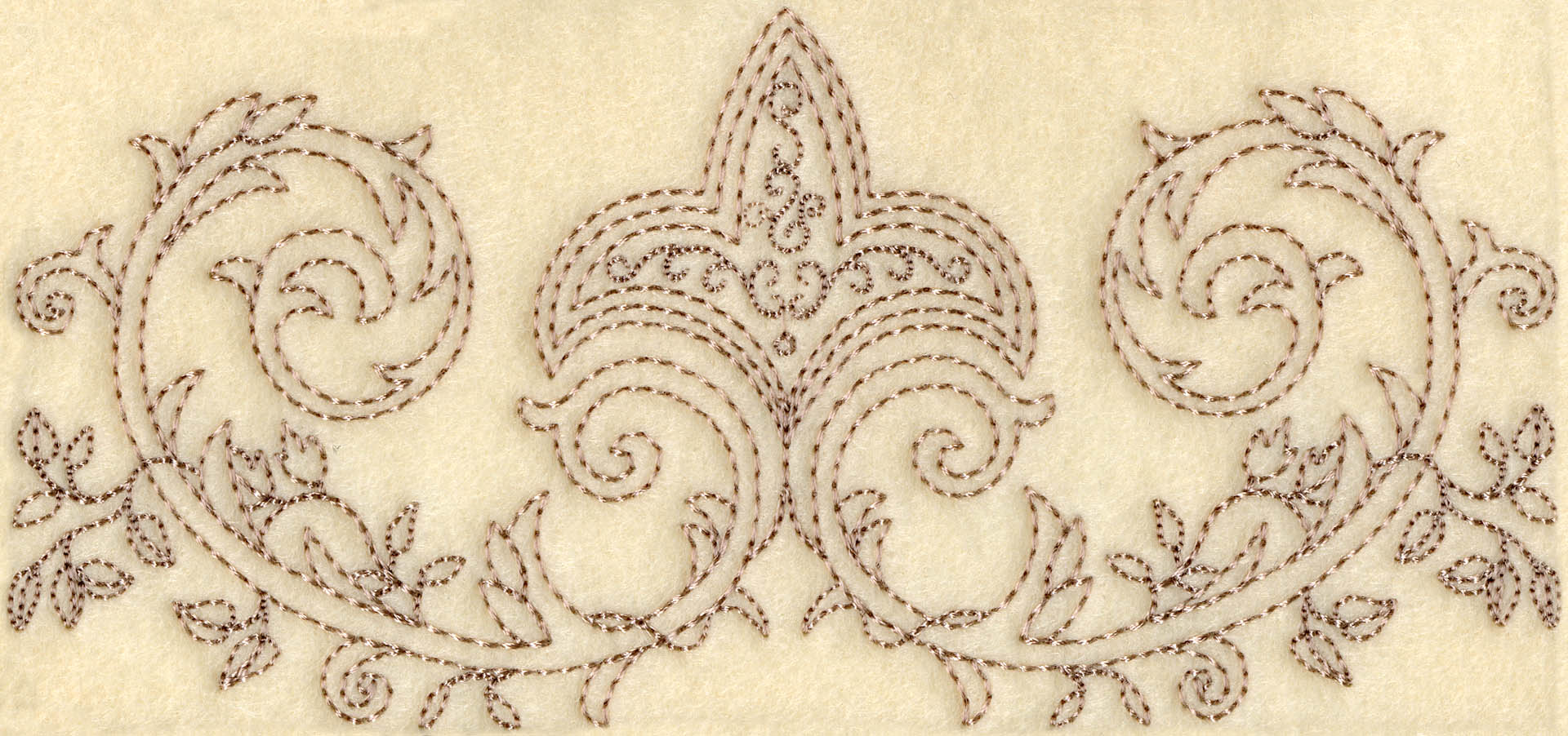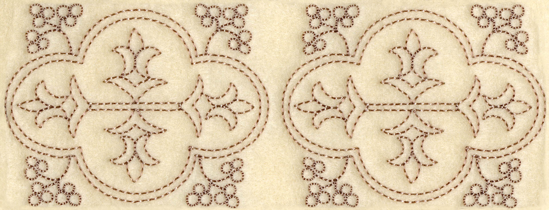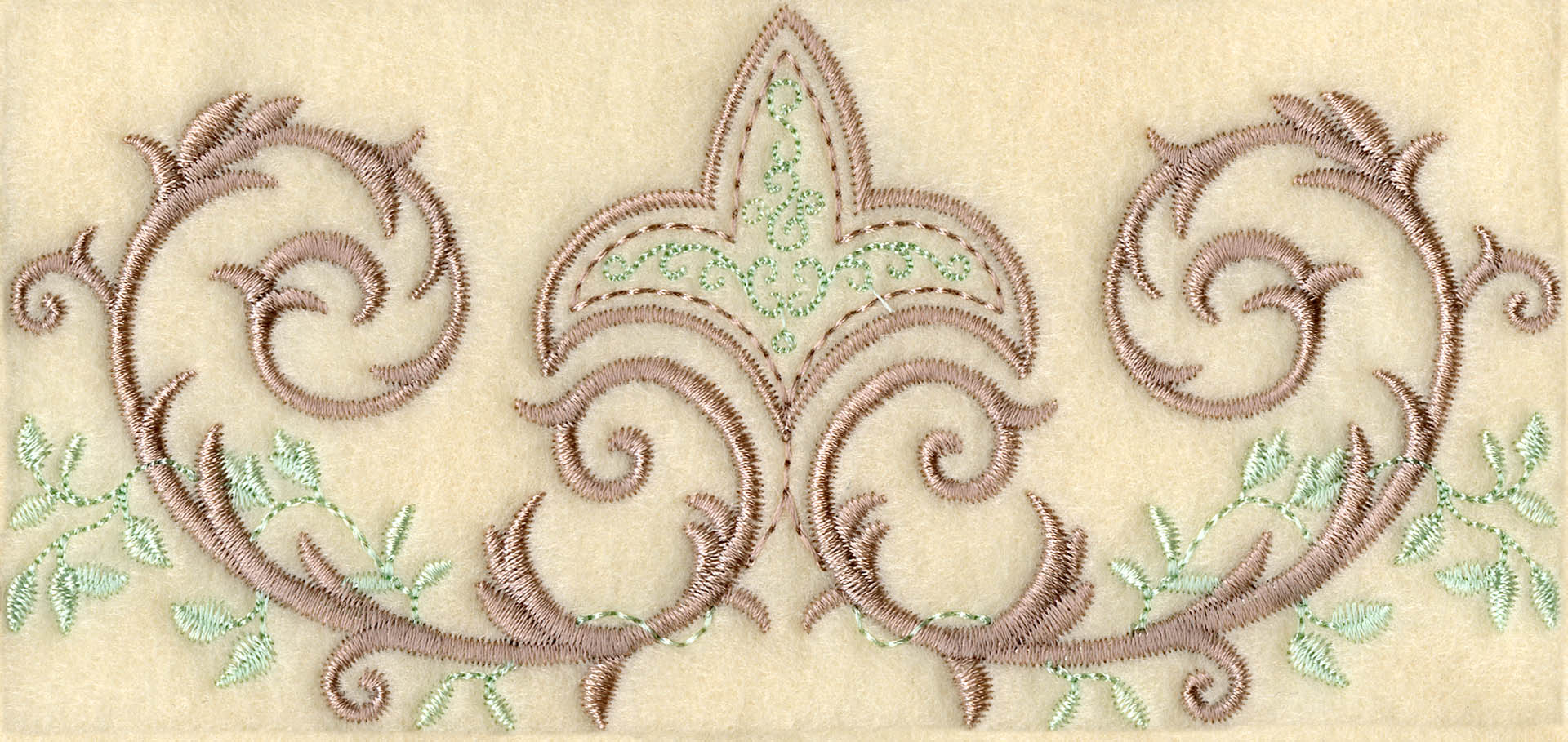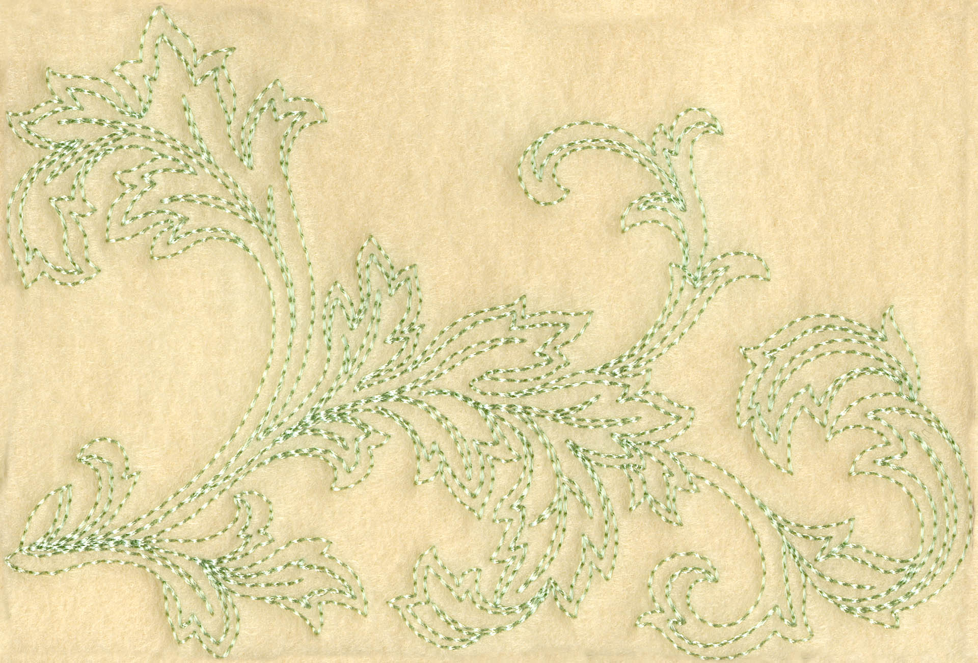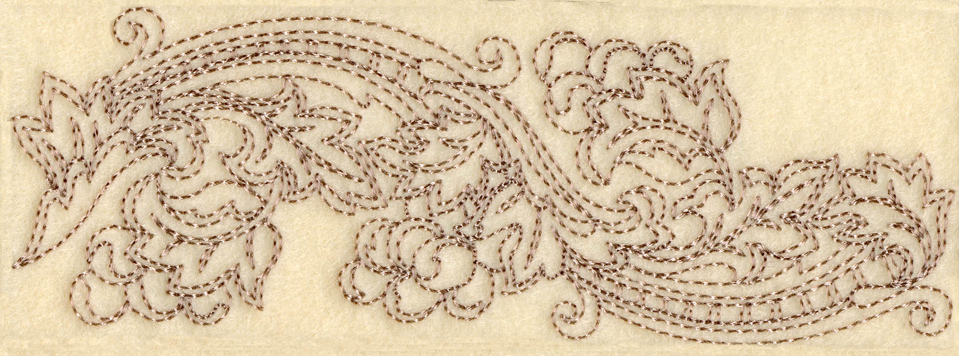 Welcome to the next installment of our Vintage series. This collection is called Vintage Borders and they will look beautiful embroidered on table linens, sheets, pillow cases or even on garments. There are 20 different designs and each is digitized in two different ways. The first way is with standard stitching and the second version is digitized as running stitches. These designs look beautiful when embroidered tone on tone, but for our examples we used sage and tan colors, using these colors allows you to see the detail in the designs. Since this is a border collection we digitized a basting stitch with all of the designs that were meant to connect. If you have never done a continuous border design before, don’t fear! We’ve included a tutorial that will demonstrate the process step by step. If you don’t want to make the borders continuous, simply skip the first thread color, which is the basting stitch. Not all of the designs are continuous; some of them are corner or motif elements.