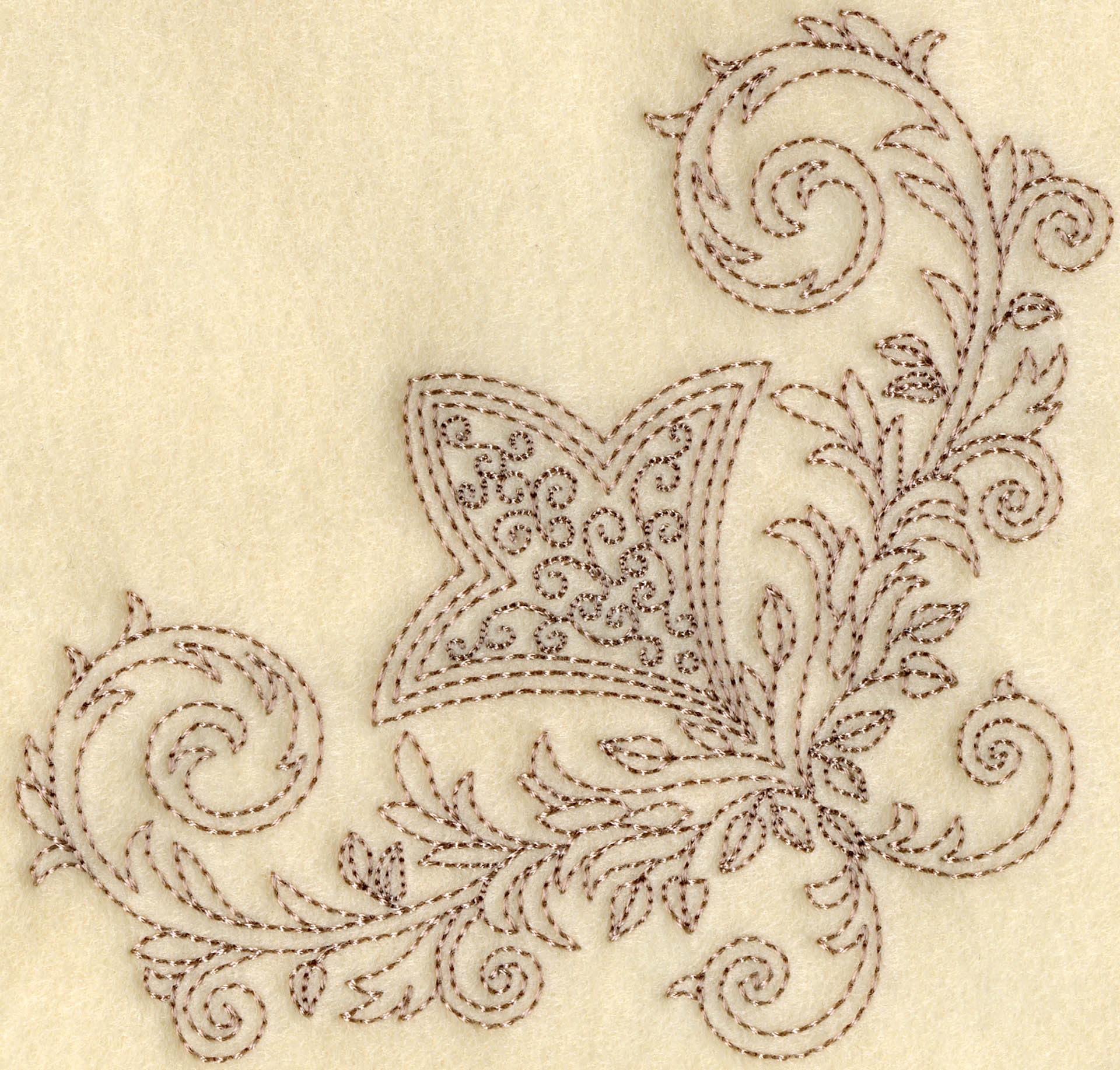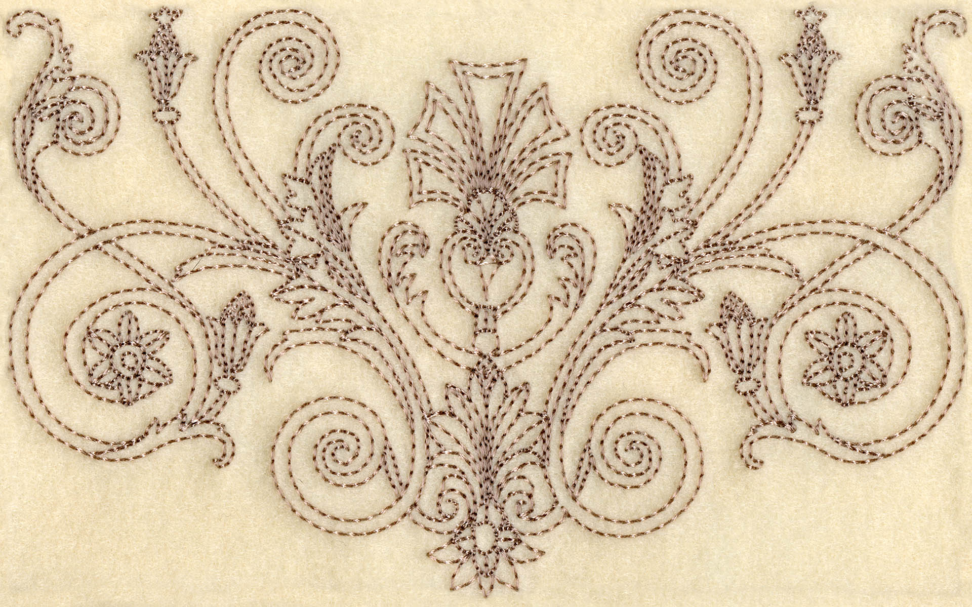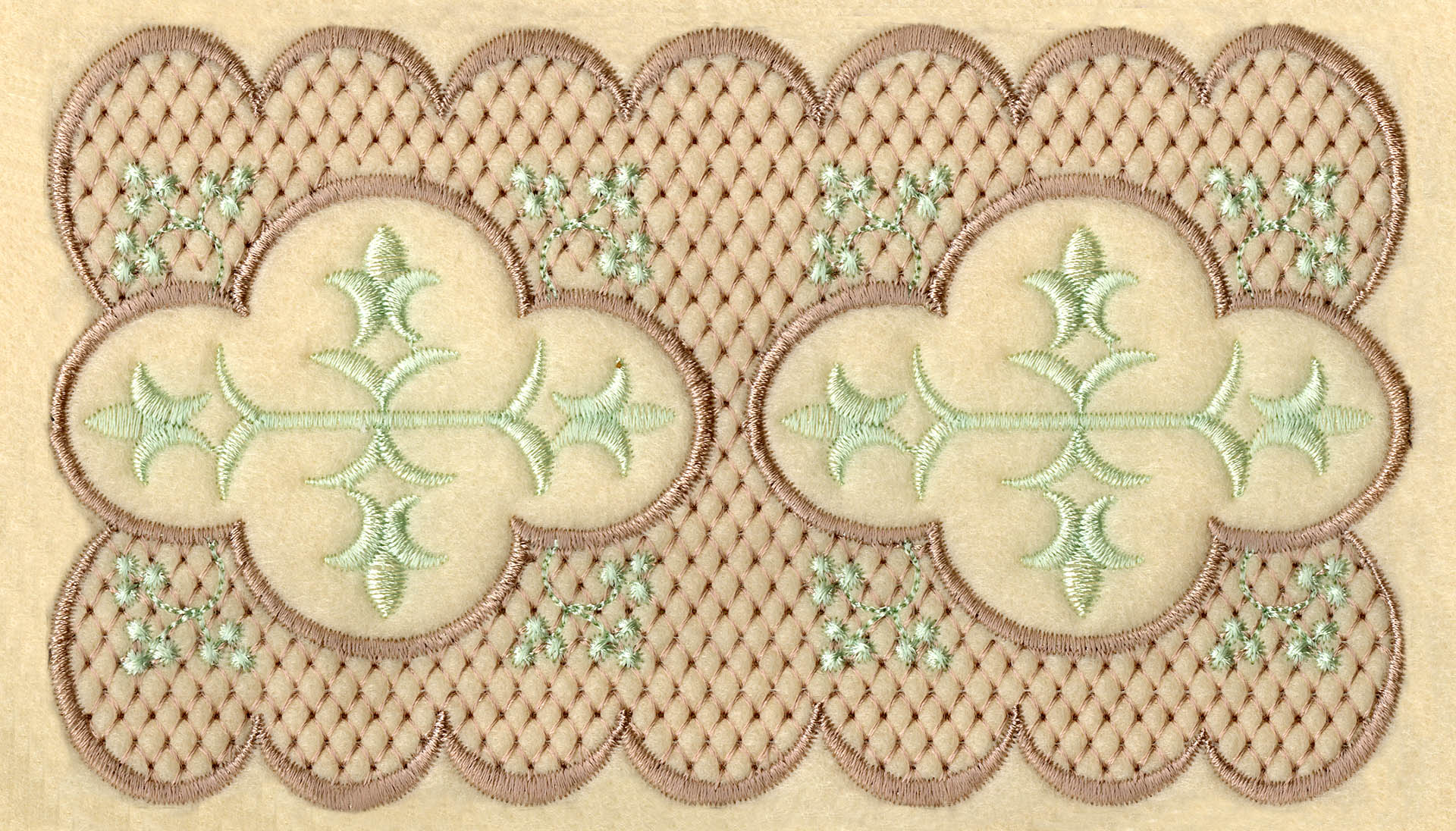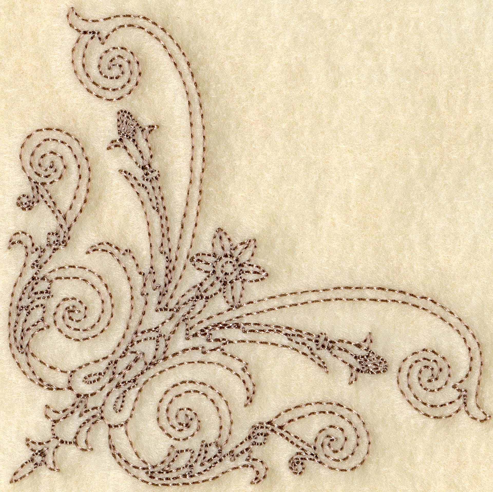 Welcome to the next installment of our Vintage series. This collection is called Vintage Borders and they will look beautiful embroidered on table linens, sheets, pillow cases or even on garments. There are 20 different designs and each is digitized in two different ways. The first way is with standard stitching and the second version is digitized as running stitches. These designs look beautiful when embroidered tone on tone, but for our examples we used sage and tan colors, using these colors allows you to see the detail in the designs. Since this is a border collection we digitized a basting stitch with all of the designs that were meant to connect. If you have never done a continuous border design before, don’t fear! We’ve included a tutorial that will demonstrate the process step by step. If you don’t want to make the borders continuous, simply skip the first thread color, which is the basting stitch. Not all of the designs are continuous; some of them are corner or motif elements.