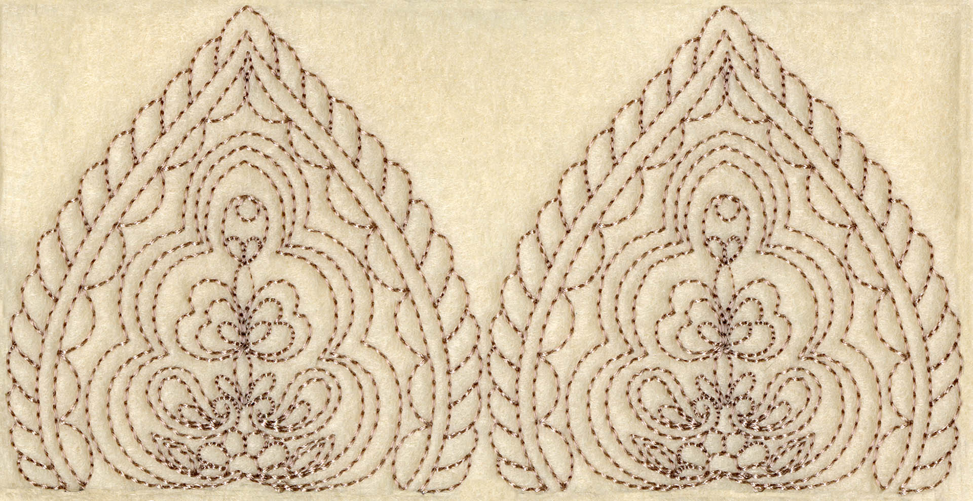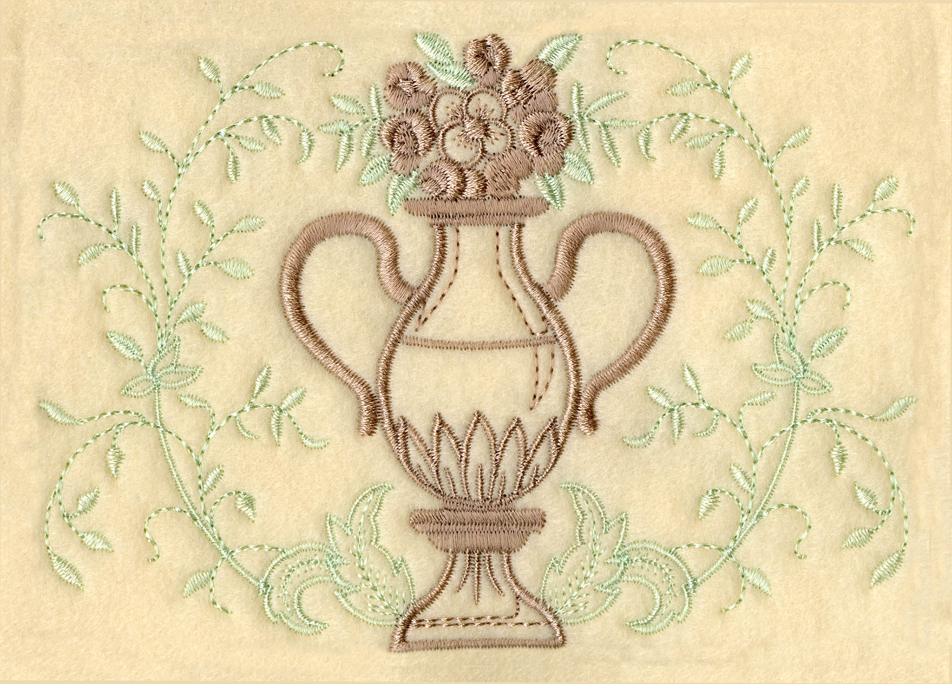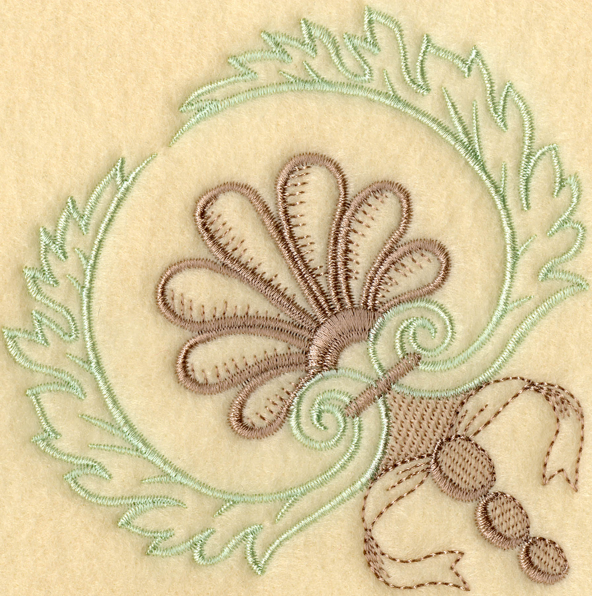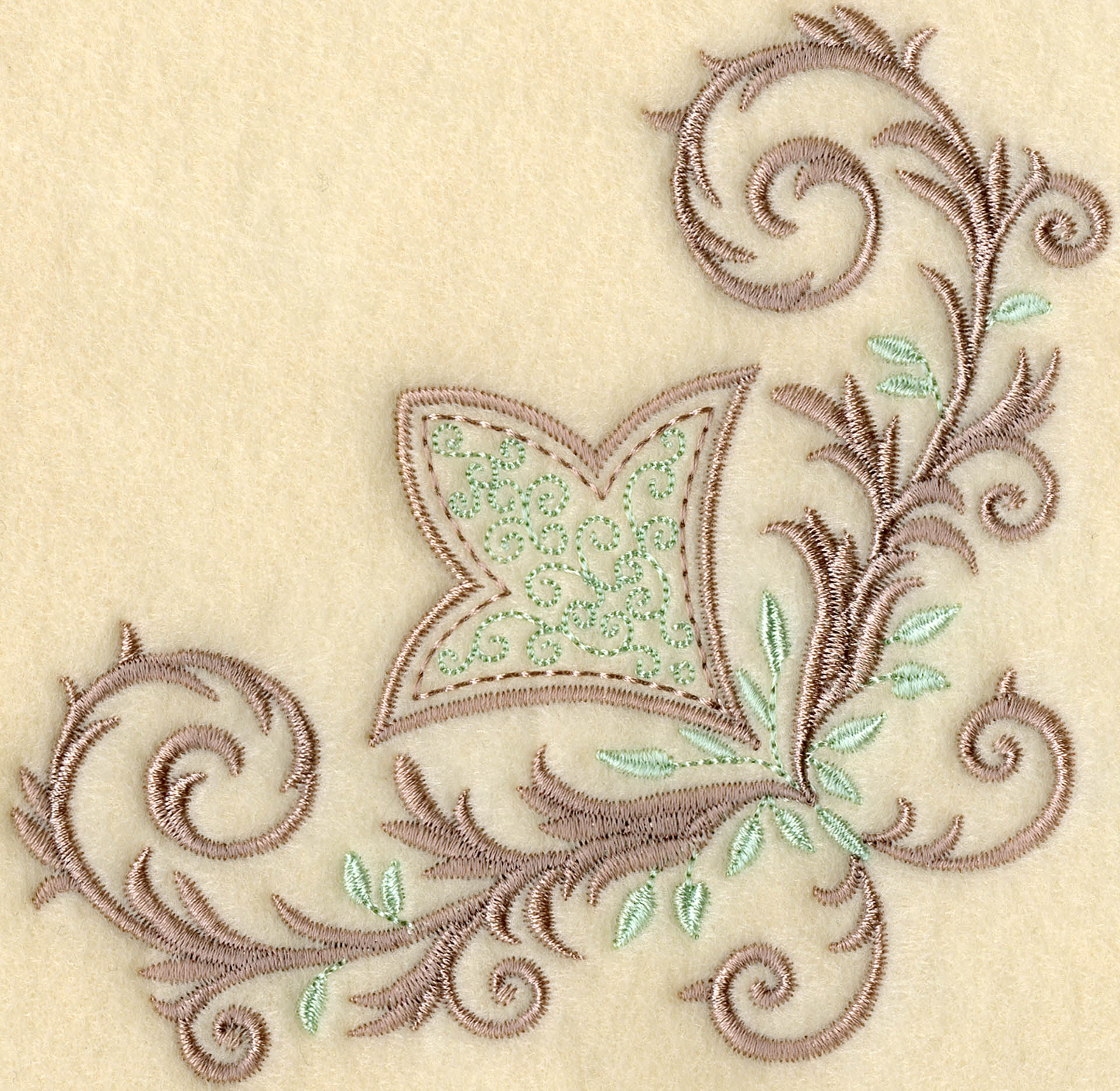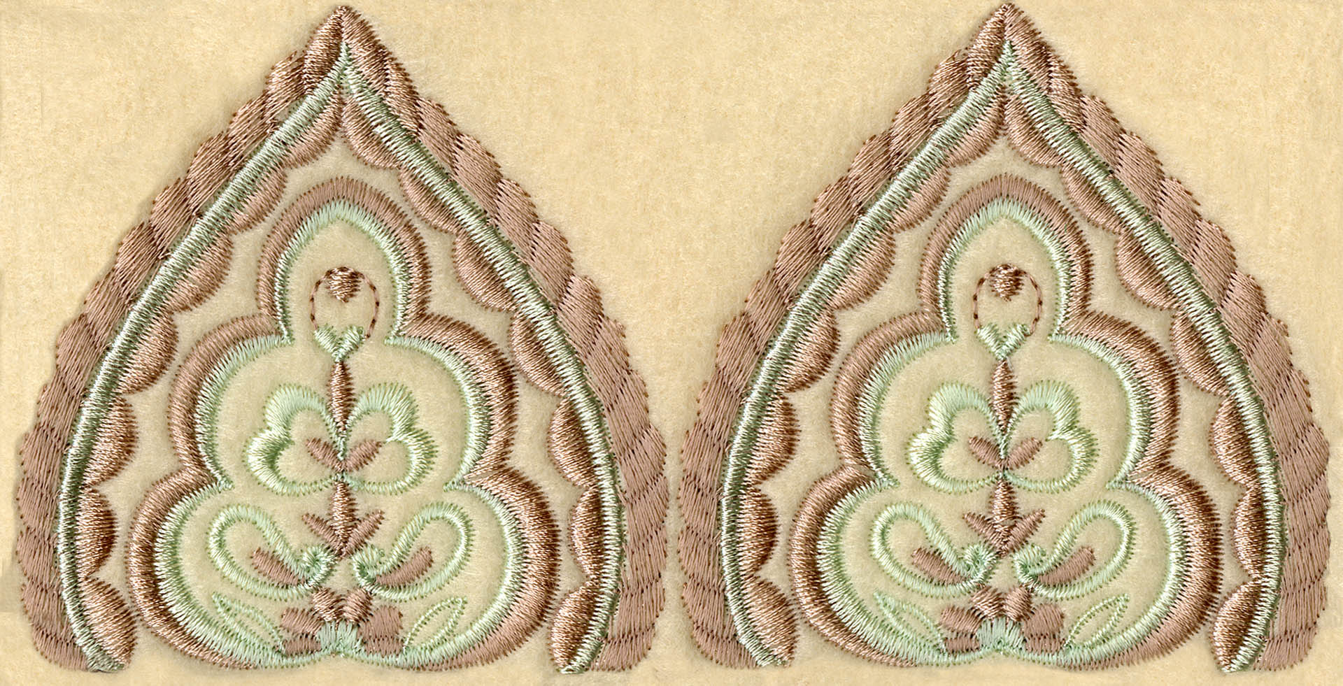 Welcome to the next installment of our Vintage series. This collection is called Vintage Borders and they will look beautiful embroidered on table linens, sheets, pillow cases or even on garments. There are 20 different designs and each is digitized in two different ways. The first way is with standard stitching and the second version is digitized as running stitches. These designs look beautiful when embroidered tone on tone, but for our examples we used sage and tan colors, using these colors allows you to see the detail in the designs. Since this is a border collection we digitized a basting stitch with all of the designs that were meant to connect. If you have never done a continuous border design before, don’t fear! We’ve included a tutorial that will demonstrate the process step by step. If you don’t want to make the borders continuous, simply skip the first thread color, which is the basting stitch. Not all of the designs are continuous; some of them are corner or motif elements.