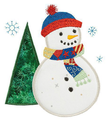 With a smiling snowman flanked by an evergreen tree, this design is the perfect combination of classic and modern. Try embroidering it onto clothing or a bag to create a happy winter-themed project you can use all season long.