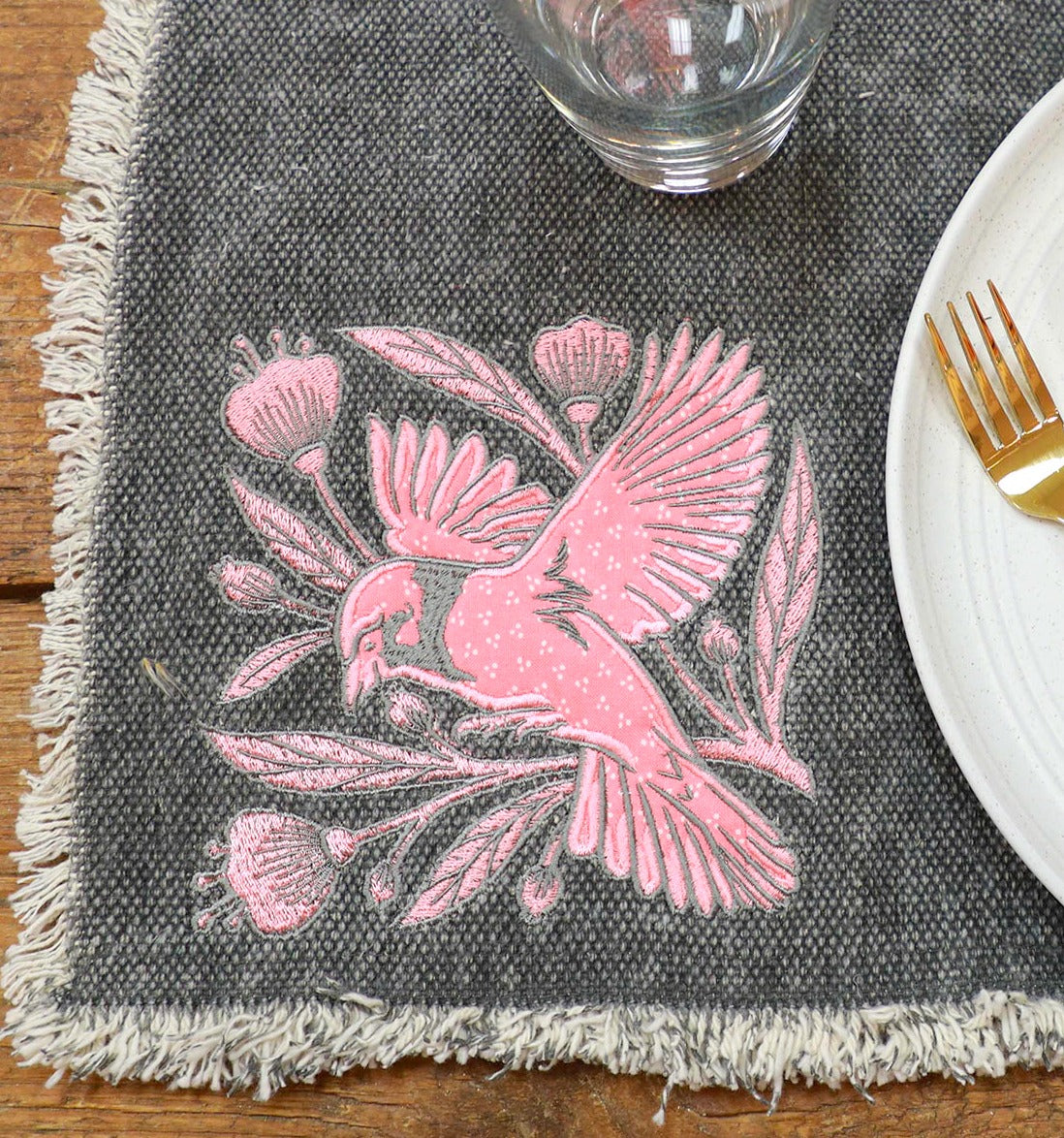 This Woodcut Bird design was created to emulate the traditional art of woodworking by utilizing a special technique, known as a ghost stitch, where the inner satin stitch matches your choice of appliqué fabric. By matching the outer stitch color to your base fabric, you’ll get a relief-style embroidery design!