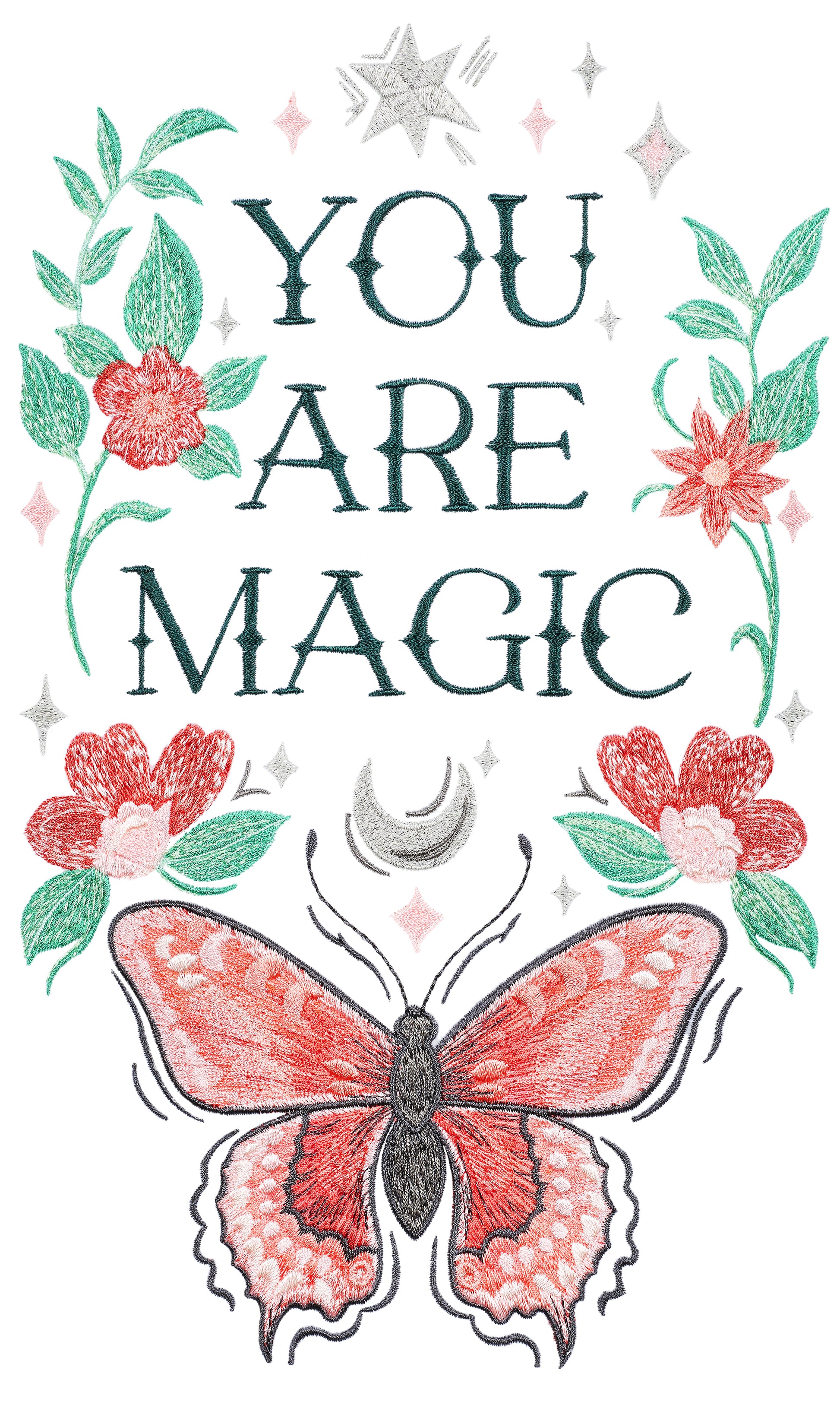 This beautiful butterfly design is the perfect reminder of the magic we hold within ourselves. Every butterfly starts out as a small caterpillar, eventually hiding away from the world in its chrysalis as it undergoes a magical transformation into its true self. Take charge of your personal journey with this inspirational motif, perfect for embroidering on tote bags, denim jackets, sweatshirts, or even room decor for the perfect motivational pick-me-up!